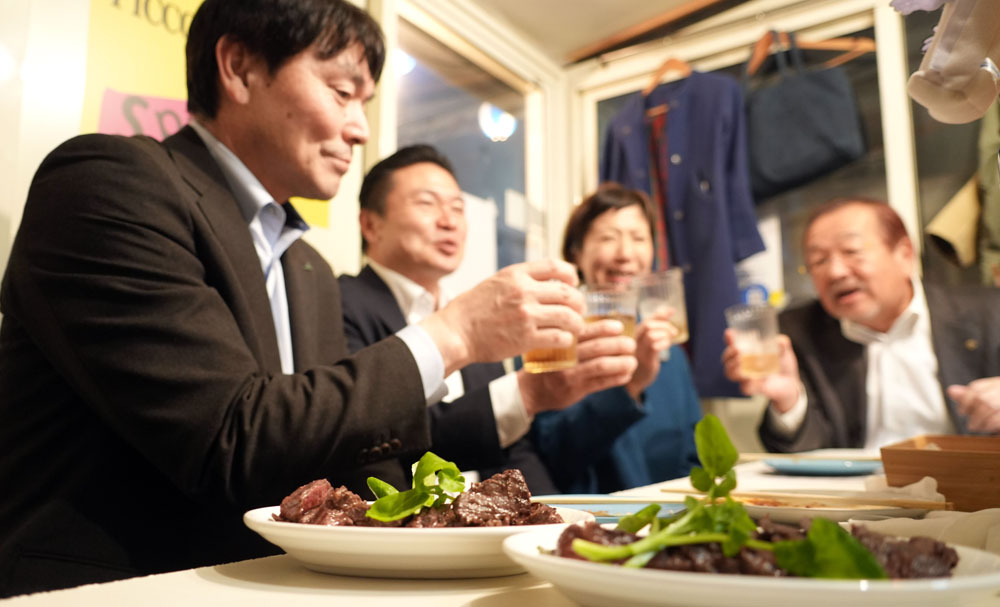 ・北の屋台で「清水町フェア」 辻町長らがメニュー試食