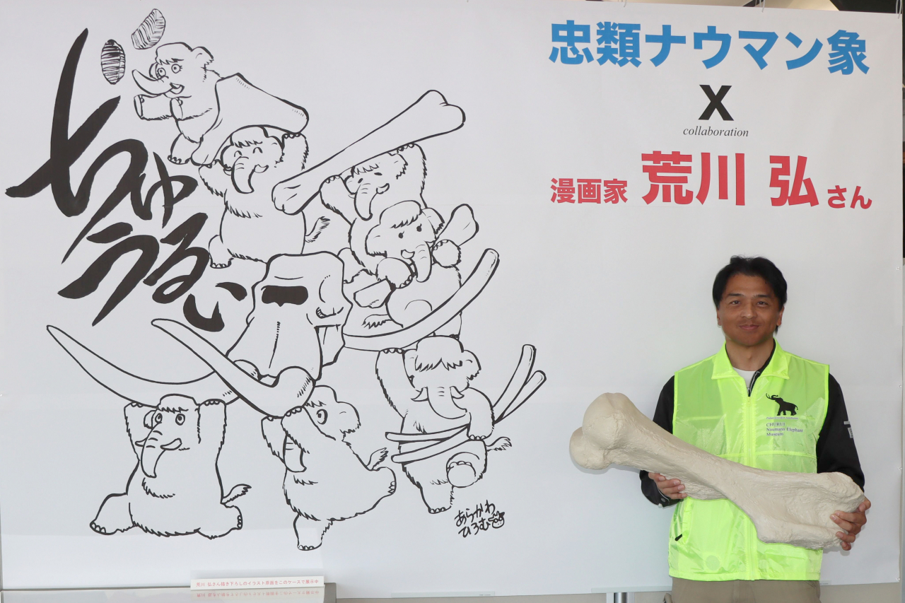 ・荒川弘さん描き下ろしのナウマンゾウ 忠類記念館に登場