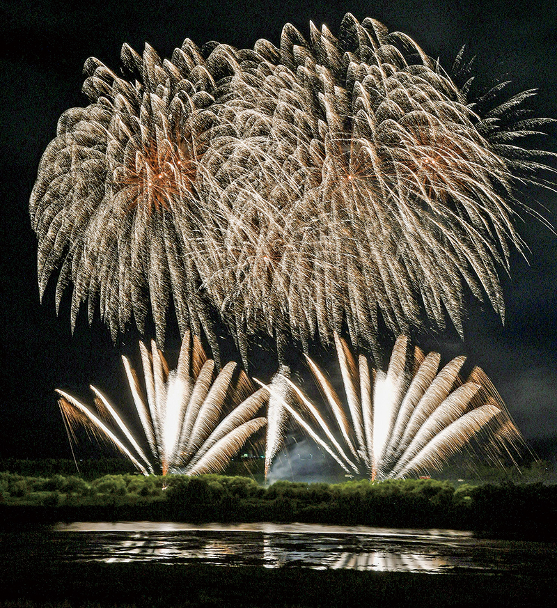 2020(令和2)年、21(令和3)年には音更町・十勝川温泉河川敷で、新型コロナウイルス収束を願うサプライズ花火を打ち上げました(写真は2020年)