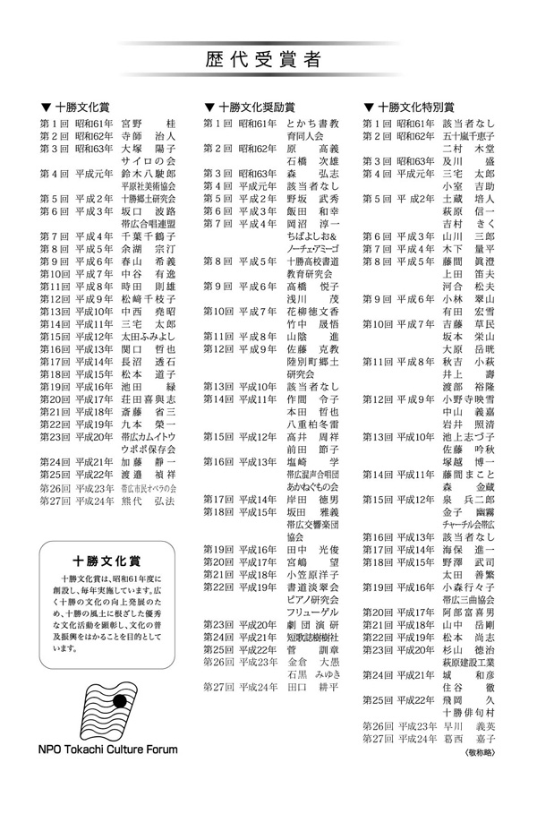 今後も十勝文化の発展に努めてまいります。ご一緒に活動できる方、そして関心のある方はお気軽にご連絡下さい。