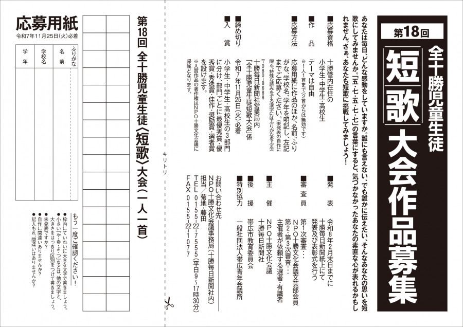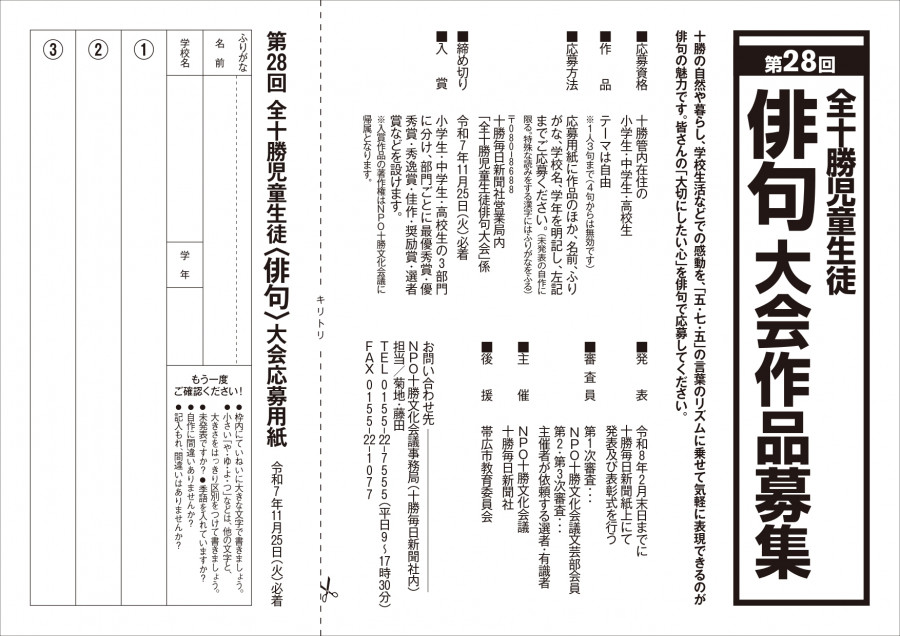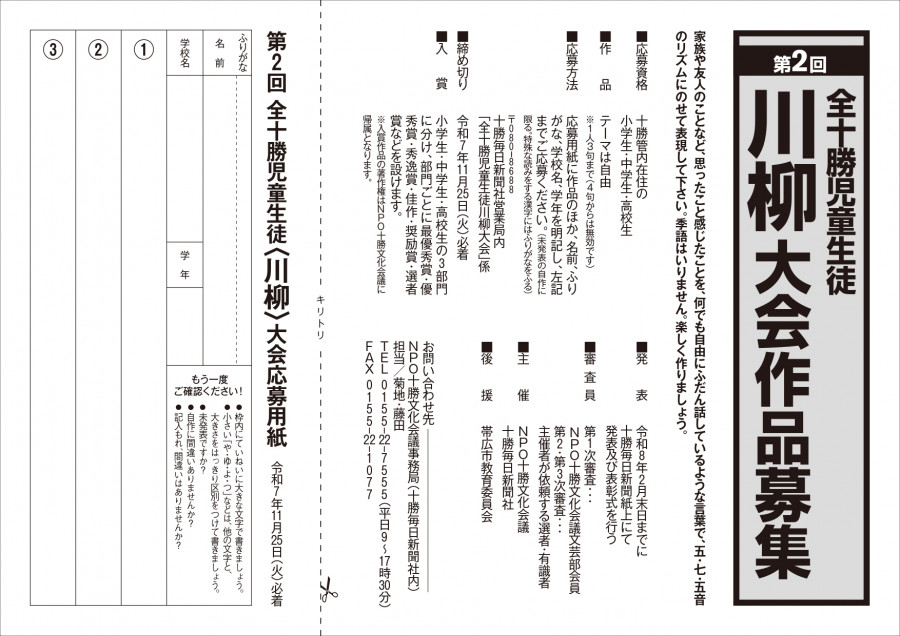 十勝管内の小中高生を対象にした短歌、俳句、川柳の大会です。